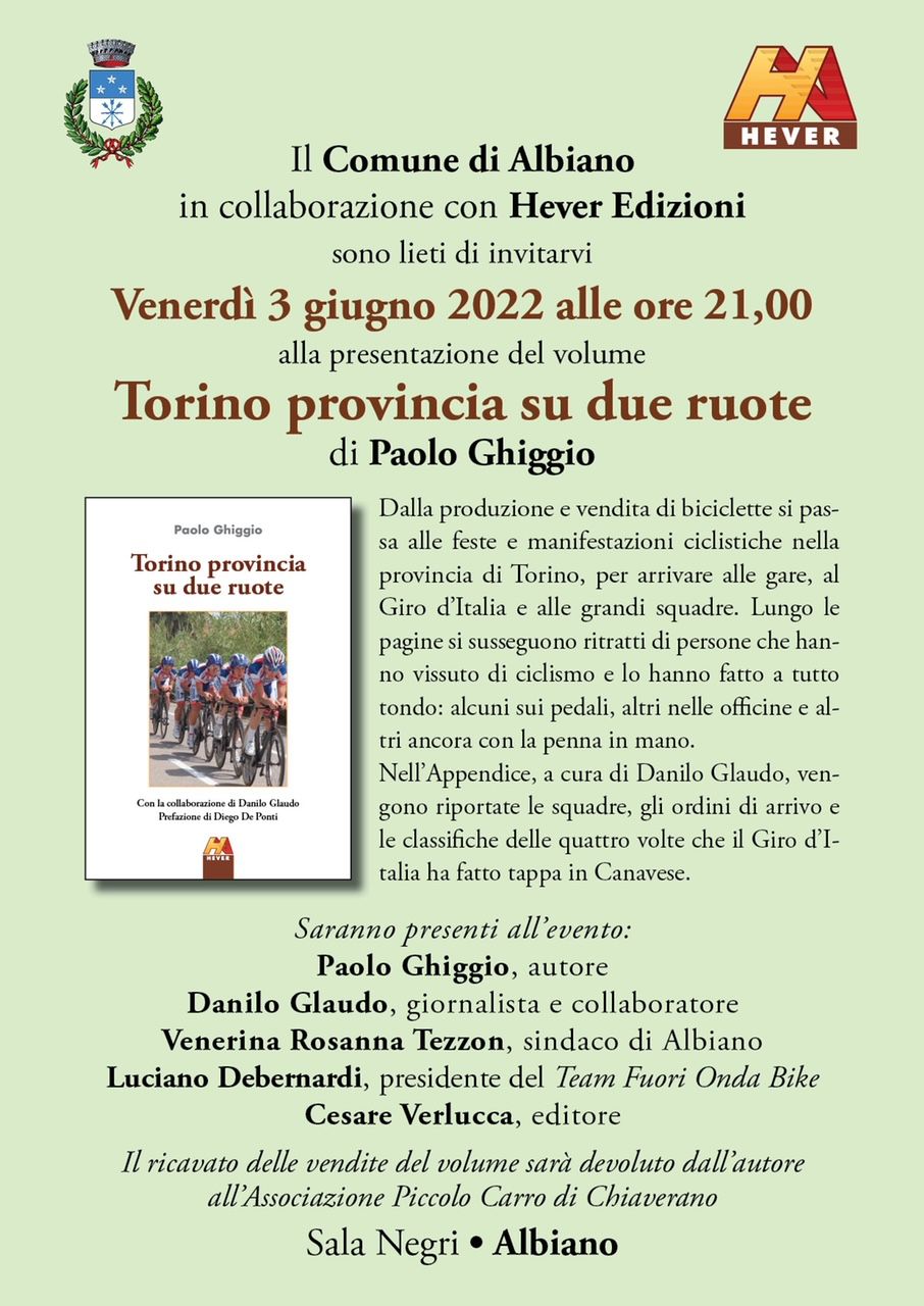 Il sabato pomeriggio dalle 13,30 si terrà una PEDALATA ENOGASTRONOMICA VINTAGE per tutti e per tutti i tipi di bici (gradita una pre-iscrizione) ed alle 21,00 CENA DEI CANAVESANI, con prenotazione obbligatoria (in tempo utile)