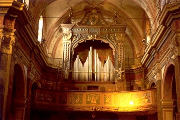 Il monumentale organo venne inaugurato nel Natale 1795 dopo due anni di lavoro. Era ed è tutt'oggi il più importante strumento piemontese del suo tempo: 16 piedi a due tastiere corrispondenti a 4 corpi d'organo, 44 registri per oltre 1.700 canne, le cui caratteristiche sono di assoluto rilievo. Tale organo costituisce una preziosa testimonianza dell’arte organaria piemontese settecentesca, non solo per la sua dimensione, ma anche perché tuttora costituito integralmente di parti originali.